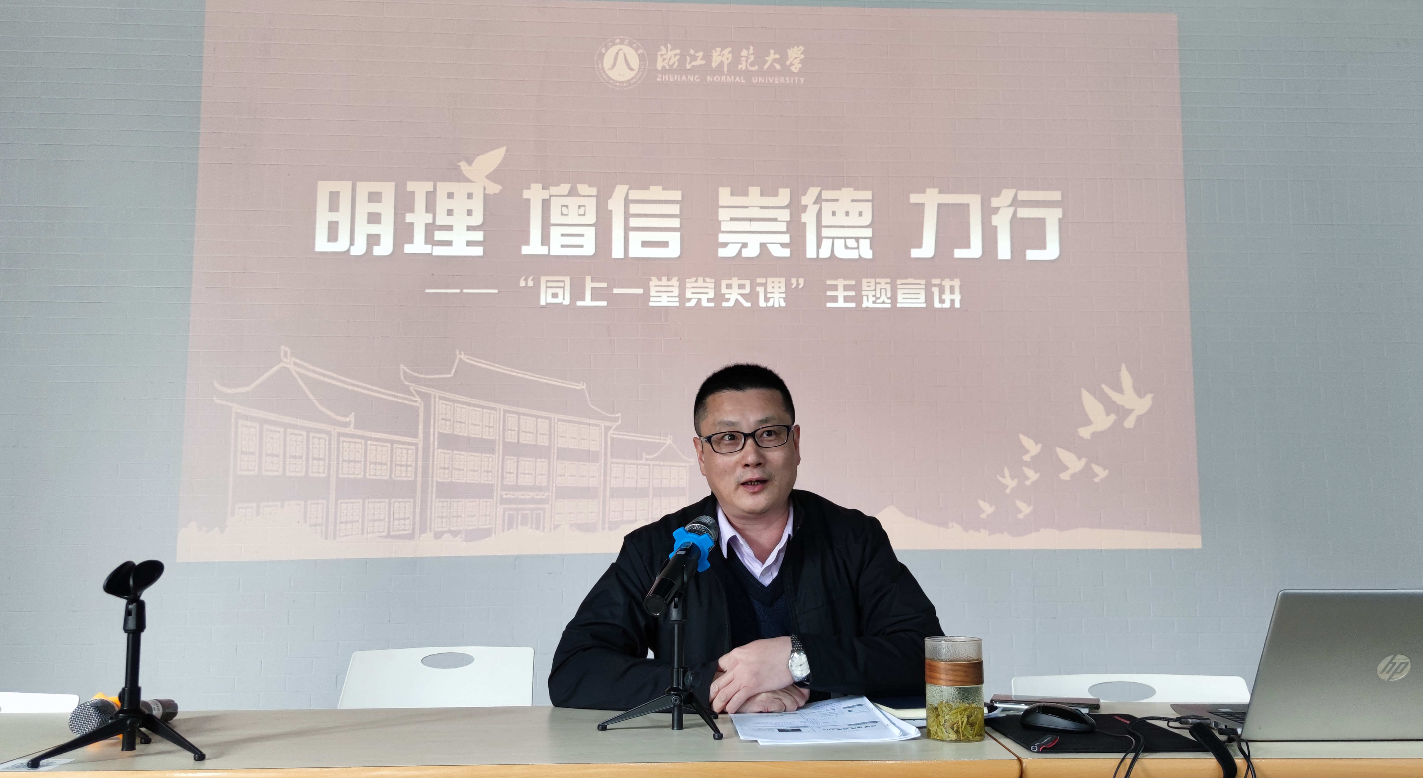 4月9日,院党委副书记金坚真以“线上+线下”的方式为全体学生“同上一堂党史课”
