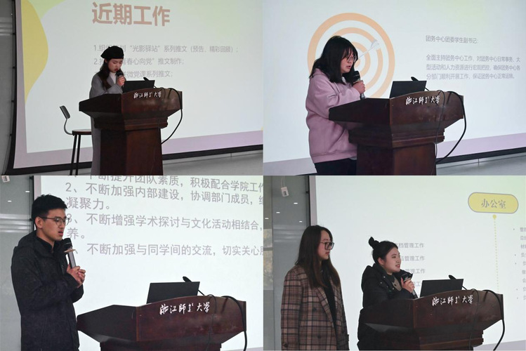 学院党员之家、团务中心、研究生会以及学生会在会上,从组织的基本情况、新学期的工作计划进行了详细介绍。他们纷纷表示,将全心全意为同学服务,积极发挥作为学院与广大同学之间的桥梁纽带作用。