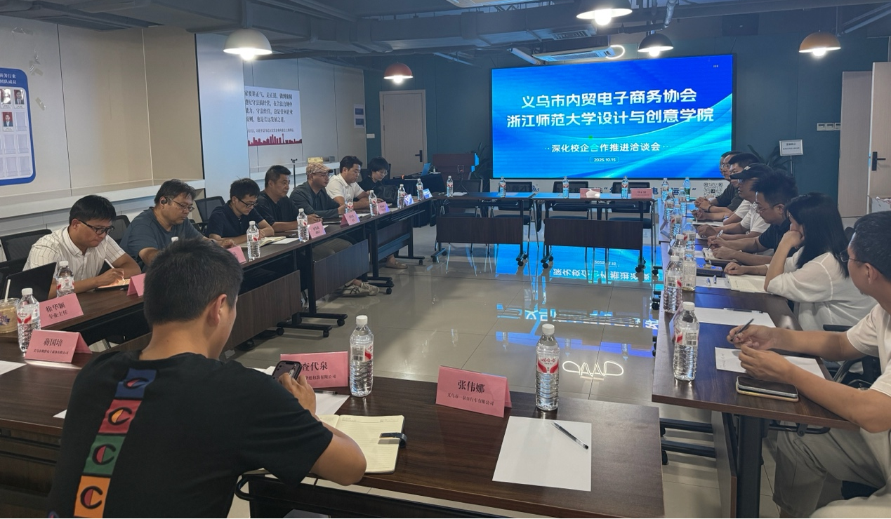 首站调研中,义乌市内贸电子商务协会会长童元智系统介绍了协会企业的设计人才需求情况,秘书长孟振及多家企业代表结合产品研发、品牌升级等实际需求,提出对复合型设计人才的迫切期待。郑军德院长现场回应,重点介绍了学院首创的多维联动培养体系——通过研究中心交叉培养、联合实验室课程开发、项目制教学等创新模式,实现教育链与产业链的有机衔接。孙发成副院长进一步阐释了本科教学与产业实践的融合机制,各专业负责人则从专业细分领域,与企业探讨了定制化人才培养方案。